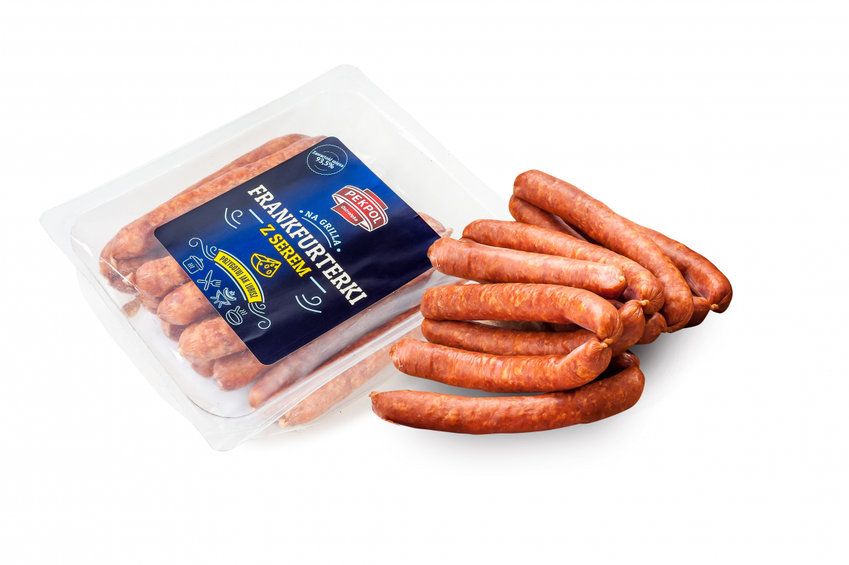 KIEŁBASA WIEPRZOWA ŚREDNIO ROZDROBNIONA, WĘDZONA, PARZONA, W OSŁONCE JADALNEJ, WOŁOWEJ.SKŁADNIKI: MIĘSO WIEPRZOWE-93,5%, SER – 4,7% (MLEKO - ŁĄCZNIE Z LAKTOZĄ, STABILIZATOR-CHLOREK WAPNIA, KULTURY BAKTERII, BARWNIK-ANNATO), WODA, SÓL, GLUKOZA, PRZYPRAWY, AROMATY, PRZECIWUTLENIACZ – ASKORBINIAN SODU, EKSTRAKTY PRZYPRAW, SUBSTANCJA KONSERWUJĄCA - AZOTYN SODU (SKŁADNIK SOLI PEKLUJĄCEJ).MOŻE ZAWIERAĆ: GLUTEN, GORCZYCĘ, JAJA, SELER, SOJĘ. WARTOŚĆ ODŻYWCZA PRODUKTU W 100 G: WARTOŚĆ ENERGETYCZNA 1100 KJ/ 265 KCAL, TŁUSZCZ 20 G, W TYM KWASY TŁUSZCZOWE NASYCONE 7,6 G, WĘGLOWODANY 1,3 G, W TYM CUKRY 0,8 G, BIAŁKO 20 G, SÓL 2,0 G.PAKOWANO W ATMOSFERZE OCHRONNEJ.
