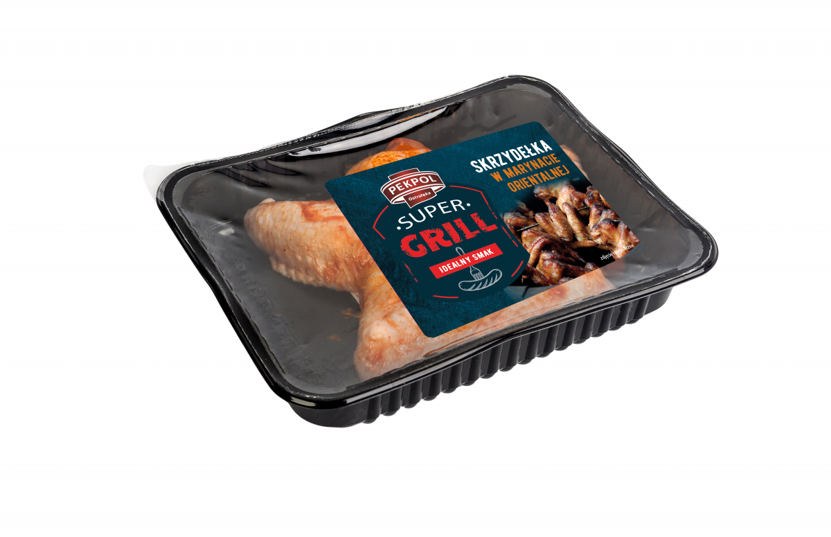 SUROWY WYRÓB MIĘSNY, Z KURCZAKA, Z DODATKIEM WODY, SCHŁODZONY.SKŁADNIKI: SKRZYDEŁKA Z KURCZAKA - 97%, WODA, SÓL, PRZYPRAWY (W TYM GORCZYCA), EKSTRAKTY PRZYPRAW, PRZECIWUTLENIACZ: KWAS ASKORBINOWY, OLEJ ROŚLINNY, STABILIZATORY: CYTRYNIANY SODU, AROMATY. MOŻE ZAWIERAĆ: MLEKO ŁĄCZNIE Z LAKTOZĄ, GLUTEN, JAJA, SELER, SOJĘ.PRODUKT GOTOWY DO SPOŻYCIA PO OBRÓBCE CIEPLNEJ.PO OTWARCIU PRZECHOWYWAĆ W WARUNKACH CHŁODNICZYCH NIE DŁUŻEJ NIŻ 24 GODZINY.WARTOŚĆ ODŻYWCZA PRODUKTU W 100 G: WARTOŚĆ ENERGETYCZNA 738 KJ/ 177 KCAL, TŁUSZCZ 12 G, W TYM KWASY TŁUSZCZOWE NASYCONE 3,4 G, WĘGLOWODANY 0,7 G, W TYM CUKRY <0,5 G, BIAŁKO 17 G, SÓL 0,86 G.PAKOWANO W ATMOSFERZE OCHRONNEJ.