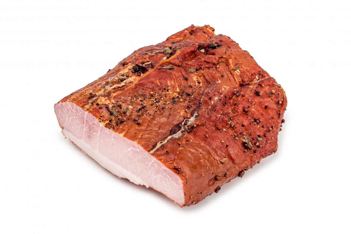 SZYNKA Z OKRYWĄ TŁUSZCZOWĄ, WIEPRZOWA, WĘDZONA, PARZONA. 100 G PRODUKTU WYPRODUKOWANO ZE 114,9 G SZYNKI WIEPRZOWEJ. SKŁADNIKI: SZYNKA WIEPRZOWA, SÓL, PRZYPRAWY (W TYM GORCZYCA), SUBSTANCJA KONSERWUJĄCA - AZOTYN SODU (SKŁADNIK SOLI PEKLUJĄCEJ). MOŻE ZAWIERAĆ: MLEKO ŁĄCZNIE Z LAKTOZĄ, JAJA, SELER, SOJĘ. WARTOŚĆ ODŻYWCZA PRODUKTU W 100 G: WARTOŚĆ ENERGETYCZNA 814 KJ/ 233 KCAL, TŁUSZCZ 11 G, W TYM KWASY TŁUSZCZOWE NASYCONE 4,5 G, WĘGLOWODANY 0,9 G, W TYM CUKRY <0,5 G, BIAŁKO 23 G, SÓL 1,9 G. PRODUKT BEZGLUTENOWY. PAKOWANO W ATMOSFERZE OCHRONNEJ.HAM "KURPIOWSKIE SPECJAŁY"PORK HAM WITH DAT COVER, SMOKED, STEAMED. 100 G OF PRODUCT PRODUCED FROM 114,9 G OF PORK HAM. INGREDIENTS: PORK HAM, SALT, SPICES (CONTAIN MUSTARD), PRESERVTIVE - SODIUM ALGINATE (COMPONENT OF CURING SALT). MAY CONTAIN: MILK INCLUDING LACTOSE, EGGS, CELERY, SOY. NUTRITIONAL VALUES OF 100G PRODUCT: ENERGY VALUE 814 KJ/ 233 KCAL, FAT 11 G, OF WHICH SATURATES 4,5 G, CARBOHYDRATE 0,9 G, OF WHICH SUGARS <0,5 G, PROTEIN 23 G, SALT 1,9 G. PRODUCT DOES NOT CONTAIN GLUTEN. PACKAGED IN PROTECTIVE ATMOSPHERE.