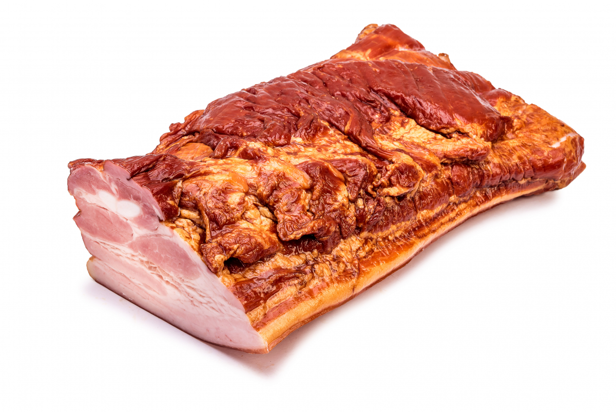 BOCZEK WIEPRZOWY, Z DODATKIEM WODY, WĘDZONY, PARZONY.SKŁADNIKI: BOCZEK WIEPRZOWY - 83,3%, WODA, SÓL, BIAŁKO SOJOWE, STABILIZATORY: E450, E451; SUBSTANCJA ZAGĘSZCZAJĄCA E407, BIAŁKO WIEPRZOWE, BŁONNIK SOJOWY, SACHAROZA, MALTODEKSTRYNY, PRZECIWUTLENIACZ E316, WZMACNIACZ SMAKU E621, AROMATY (W TYM AROMAT DYMU WĘDZARNICZEGO), SUBSTANCJA KONSERWUJĄCA E250.MOŻE ZAWIERAĆ: MLEKO ŁĄCZNIE Z LAKTOZĄ, GLUTEN, GORCZYCĘ, JAJA, SELER.WARTOŚĆ ODŻYWCZA PRODUKTU W 100 G: WARTOŚĆ ENERGETYCZNA 1352 KJ/ 328 KCAL, TŁUSZCZ 31 G, W TYM KWASY TŁUSZCZOWE NASYCONE 13 G, WĘGLOWODANY 1,9 G, W TYM CUKRY 0,6 G, BIAŁKO 13 G, SÓL 1,9 G.PAKOWANO PRÓŻNIOWO.BACON FROM CHIMNEYPORK BACON, WITH THE ADDITION OF WATER, SMOKED, STEAMED.INGREDIENTS: PORK BACON - 83,3%, WATER, SALT, SOY PROTEIN, STABILIZERS: E450, E451, E407 THICKENING AGENT, PORK PROTEIN, SOY FIBRE, SUCROSE, MALTODEXTRIN, ANTIOXIDANT E316, E621 FLAVOUR ENHANCER, AROMA, PRESERVATIVE E250. PRODUCT MAY CONTAIN: MILK (INCLUDING LACTOSE), GLUTEN, MUSTARD, EGGS, CELERY.NUTRITIONAL VALUES OF 100G PRODUCT: ENERGY VALUE 1352KJ/328KCAL, FAT 31G, OF WHICH SATURATES 13G, CARBOHYDRATE 1,9G, OF WHICH SUGARS 0,6G, PROTEIN 13G, SALT 1,9G. PRODUCT OF POLANDPACKED IN VACUUM.