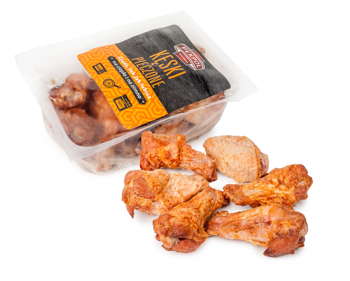 WYRÓB DROBIOWY, PIECZONY.SKŁADNIKI: SKRZYDEŁKA Z KURCZAKA - 99%, SÓL, BŁONNIKI ROŚLINNE, MALTODEKSTRYNA, PRZYPRAWY, REGULATORY KWASOWOŚCI: OCTAN POTASU, MLECZAN POTASU, CUKIER, WARZYWA SUSZONE, AROMATY NATURALNE, AROMAT DYMU WĘDZARNICZEGO, ACEROLA W PROSZKU, SUBSTANCJA KONSERWUJĄCA: AZOTYN SODU. MOŻE ZAWIERAĆ: MLEKO ŁĄCZNIE Z LAKTOZĄ, GLUTEN, JAJA, SELER, SOJĘ, GORCZYCĘ. WARTOŚĆ ODŻYWCZA PRODUKTU W 100 G: WARTOŚĆ ENERGETYCZNA 875 KJ/ 210 KCAL, TŁUSZCZ 12 G, W TYM KWASY TŁUSZCZOWE NASYCONE 3,1 G, WĘGLOWODANY 1,6 G, W TYM CUKRY 1,0 G, BIAŁKO 23 G, SÓL 2,2 G.PAKOWANO W ATMOSFERZE MODYFIKOWANEJ.