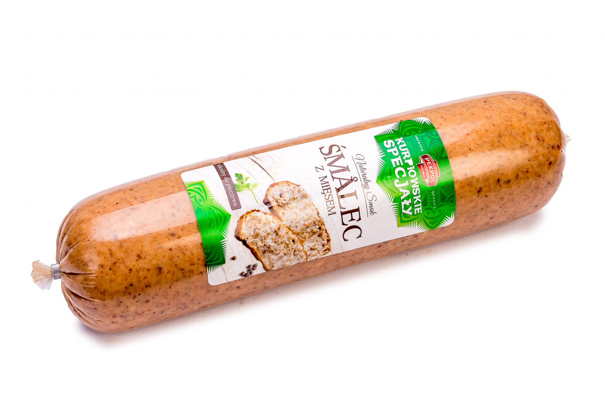 WYRÓB WIEPRZOWY. SMALEC. PRODUKT W OSŁONCE NIEJADALNEJ. 100 G SMALCU WYPRODUKOWANO Z 68,9 G MIĘSA WIEPRZOWEGO I 56,1 G TŁUSZCZU WIEPRZOWEGO. SKŁADNIKI: MIĘSO WIEPRZOWE, TŁUSZCZ WIEPRZOWY, PRZYPRAWY, SÓL, AROMAT. MOŻE ZAWIERAĆ: MLEKO ŁĄCZNIE Z LAKTOZĄ, GORCZYCĘ, JAJA, SELER, SOJĘ. WARTOŚĆ ODŻYWCZA PRODUKTU W 100 G: WARTOŚĆ ENERGETYCZNA 3072 KJ/ 746 KCAL, TŁUSZCZ 80 G, W TYM KWASY TŁUSZCZOWE NASYCONE 21 G, WĘGLOWODANY 2,2 G, W TYM CUKRY 0,7 G, BIAŁKO 6,1 G, SÓL 2,7 G.LARD KURPIAN SPECIALITIESPORK PRODUCT. LARD. PRODUCT IN NON-EDIBLE CASING. 100 G OF THE LARD WAS PRODUCED FROM 68.9 G OF PORK MEAT AND 56.1 G OF PORK FAT. INGREDIENTS: PORK MEAT, PORK FAT, SPICES, SALT, FLAVOUR. MAY CONTAIN: MILK, INCLUDING LACTOSE, MUSTARD SEEDS, EGGS, CELERY, SOY. PRODUCT NUTRITIONAL VALUE PER 100 G: ENERGY 3072 KJ/746 KCAL, FATS 80 G, OF WHICH SATURATES 21 G, CARBOHYDRATES 2.2 G, OF WHICH SUGARS 0.7 G, PROTEIN 6.1 G, SALT 2.7 G.