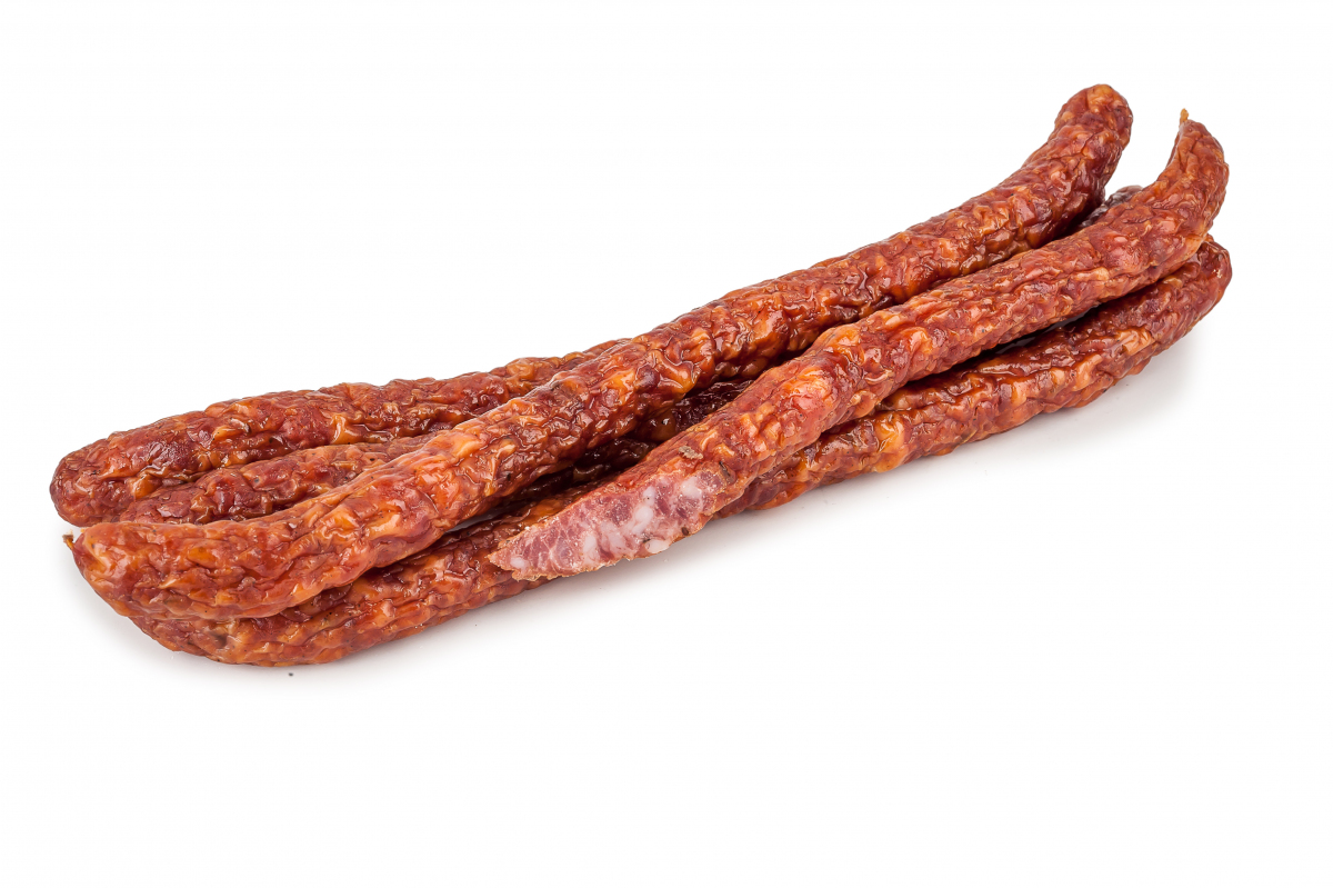 KIEŁBASA WIEPRZOWA ŚREDNIO ROZDROBNIONA, WĘDZONA, PARZONA, SUSZONA, W JELICIE BARANIM.100G KABANOSÓW ZOSTAŁO WYPRODUKOWANE ZE 172,4G MIĘSA WIEPRZOWEGO.SKŁADNIKI: MIĘSO WIEPRZOWE, SÓL, PRZYPRAWY, EKSTRAKTY PRZYPRAW, AROMATY (W TYM NATURALNE), GLUKOZA, SUBSTANCJA KONSERWUJĄCA E250.MOŻE ZAWIERAĆ: MLEKO ŁĄCZNIE Z LAKTOZĄ, SOJĘ, GORCZYCĘ, JAJA, SELER. WARTOŚĆ ODŻYWCZA PRODUKTU W 100G: WARTOŚĆ ENERGETYCZNA 1937 KJ/ 467 KCAL, TŁUSZCZ 38 G, W TYM KWASY TŁUSZCZOWE NASYCONE 15 G, WĘGLOWODANY 2,3 G, W TYM CUKRY 1,4 G, BIAŁKO 28 G, SÓL 2,6 G.PAKOWANO W ATMOSFERZE OCHRONNEJ.