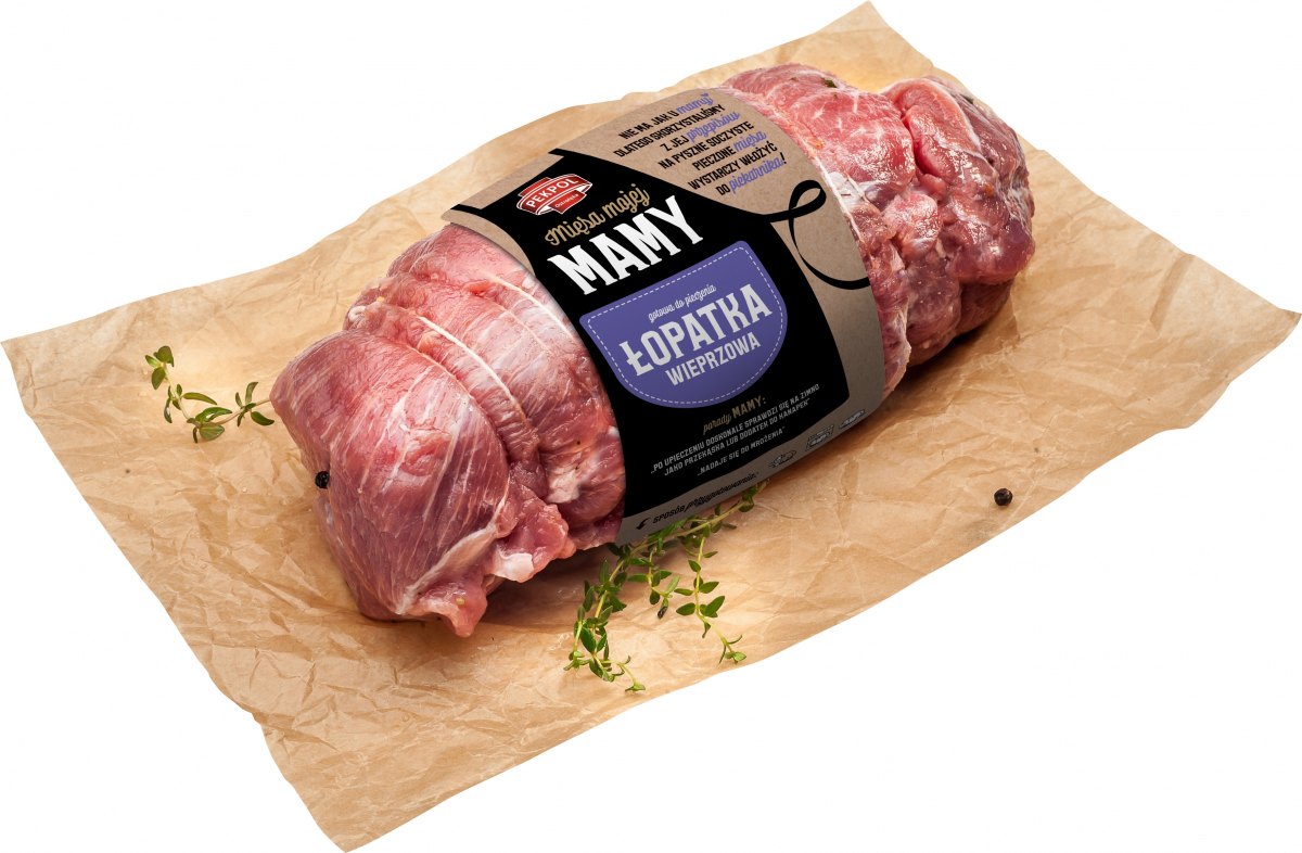 SUROWY WYRÓB MIĘSNY, Z DODATKIEM WODY.SKŁADNIKI: ŁOPATKA WIEPRZOWA - 87%, WODA, SÓL, MALTODEKSTRYNA, GLUKOZA, AROMATY, BIAŁKO WIEPRZOWE, SUBSTANCJA ZAGĘSZCZAJĄCA E407, STABILIZATOR E331, REGULATORY KWASOWOŚCI: E261, E326, E330; CUKIER, PRZYPRAWY, PRZECIWUTLENIACZE: E301, E300.MOŻE ZAWIERAĆ: MLEKO ŁĄCZNIE Z LAKTOZĄ, GORCZYCĘ, JAJA, SELER, SOJĘ.SUROWY WYRÓB MIĘSNY, GOTOWY DO SPOŻYCIA PO OBRÓBCE TERMICZNEJ.WARTOŚĆ ODŻYWCZA PRODUKTU W 100 G: WARTOŚĆ ENERGETYCZNA 530 KJ/ 126 KCAL, TŁUSZCZ 4,9 G, W TYM KWASY TŁUSZCZOWE NASYCONE 1,8 G, WĘGLOWODANY 1,8 G, W TYM CUKRY <0,5 G, BIAŁKO 19 G, SÓL 1,2 G.PAKOWANO PRÓŻNIOWO.