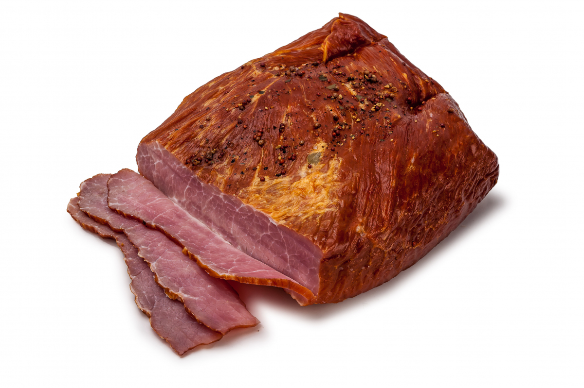 SZYNKA WIEPRZOWA Z OKRYWA TŁUSZCZOWĄ, Z DODATKIEM WODY, WĘDZONA, SUROWA.SKŁADNIKI: MIĘSO WIEPRZOWE - 84,7%, WODA, SÓL, BIAŁKO KOLAGENOWE WIEPRZOWE, SUBSTANCJE ZAGĘSZCZAJĄCE: E407A, E415; STABILIZATORY: E451, E452, E450, E331; GLUKOZA, MALTODEKSTRYNA, WZMACNIACZ SMAKU E621, REGULATORY KWASOWOŚCI: E262, E261, E326; PRZECIWUTLENIACZE: E301, E300; CUKIER, OCET SPIRYTUSOWY, EKSTRAKTY DROŻDŻOWE, AROMATY, PRZYPRAWY (W TYM GORCZYCA), SUBSTANCJA KONSERWUJĄCA E250.MOŻE ZAWIERAĆ: MLEKO ŁĄCZNIE Z LAKTOZĄ, JAJA, SELER, SOJĘ. WARTOŚĆ ODŻYWCZA PRODUKTU W 100 G: WARTOŚĆ ENERGETYCZNA 892 KJ/ 215 KCAL, TŁUSZCZ 16 G, W TYM KWASY TŁUSZCZOWE NASYCONE 6,4 G, WĘGLOWODANY 0,9 G, W TYM CUKRY 0,8 G, BIAŁKO 17 G, SÓL 2,1 G.PAKOWANO W ATMOSFERZE OCHRONNEJ. SMOKED HUNTER’S HAMPORK HAM WITH DAT COVER, WITH THE ADDITION OF WATER, SMOKED, RAW .INGREDIENTS: PORK MEAT - 84,7%, WATER, SALT, PORK COLLAGEN PROTEIN, THICKENERS: E407A, E415; STABILIZERS: E451, E452, E450, E331; GLUCOSE, MALTODEXTRIN , FLAVOUR ENHANCER E621, ACIDITY REGULATORS: E262, E261, E326; ANTIOXIDANTS: E301, E300; SUGAR, SPIRIT VINEGAR, YEAST EXTRACT, AROMAS, SPICES (INCLUDING MUSTARD), PRESERVATIVE E250.MAY CONTAIN: MILK INCLUDING LACTOSE, EGGS, CELERY, SOY.NUTRITIONAL VALUES OF 100G PRODUCT: ENERGY VALUE 892 KJ/ 215 KCAL, FAT 16 G, OF WHICH SATURATES 6,4 G, CARBOHYDRATE 0,9 G, OF WHICH SUGARS 0,8 G, PROTEIN 17 G, SALT 2,1 G.PACKAGED IN PROTECTIVE ATMOSPHERE