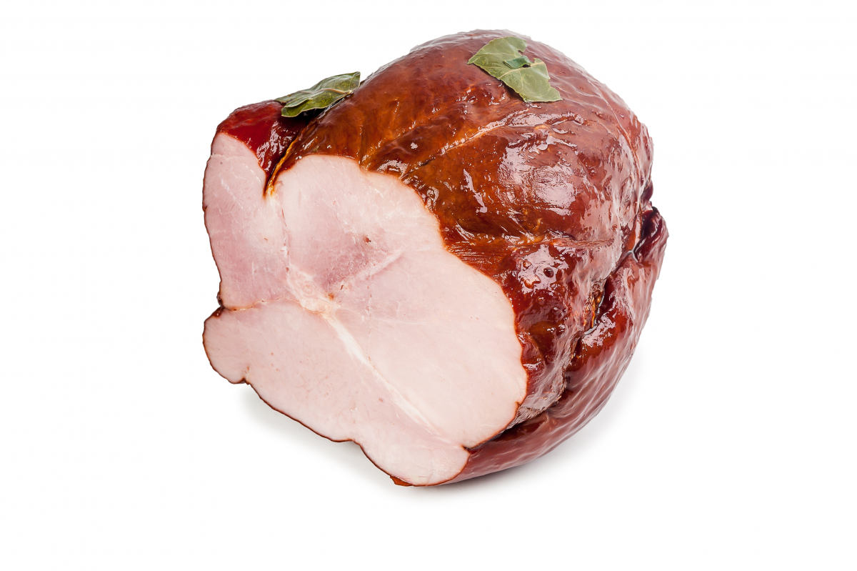 SZYNKA WIEPRZOWA, Z DODATKIEM WODY, WĘDZONA, PARZONA.SKŁADNIKI: SZYNKA WIEPRZOWA – 70,4%, WODA, BIAŁKO SOJOWE, SÓL, SUBSTANCJE ZAGĘSZCZAJĄCE: E407, E415; STABILIZATORY: E451, E452; CUKRY: GLUKOZA, SACHAROZA; WZMACNIACZ SMAKU E621, PRZECIWUTLENIACZ E316, REGULATORY KWASOWOŚCI: E262, E331; HEMOGLOBINA WIEPRZOWA, MALTODEKSTRYNA, PIEPRZ, CZOSNEK, AROMATY (W TYM AROMAT DYMU WĘDZARNICZEGO), LIŚĆ LAUROWY - 0,08%, SUBSTANCJA KONSERWUJĄCA E250.MOŻE ZAWIERAĆ: MLEKO ŁĄCZNIE Z LAKTOZĄ, GLUTEN, GORCZYCĘ, JAJA, SELER.WARTOŚĆ ODŻYWCZA NA 100 G: WARTOŚĆ ENERGETYCZNA 353 KJ/83 KCAL, TŁUSZCZ 1,5 G, W TYM KWASY TŁUSZCZOWE NASYCONE 1,1 G; WĘGLOWODANY 0,8 G, W TYM CUKRY <0,5 G; BIAŁKO 16 G, SÓL 1,9 G.PAKOWANO PRÓŻNIOWO.